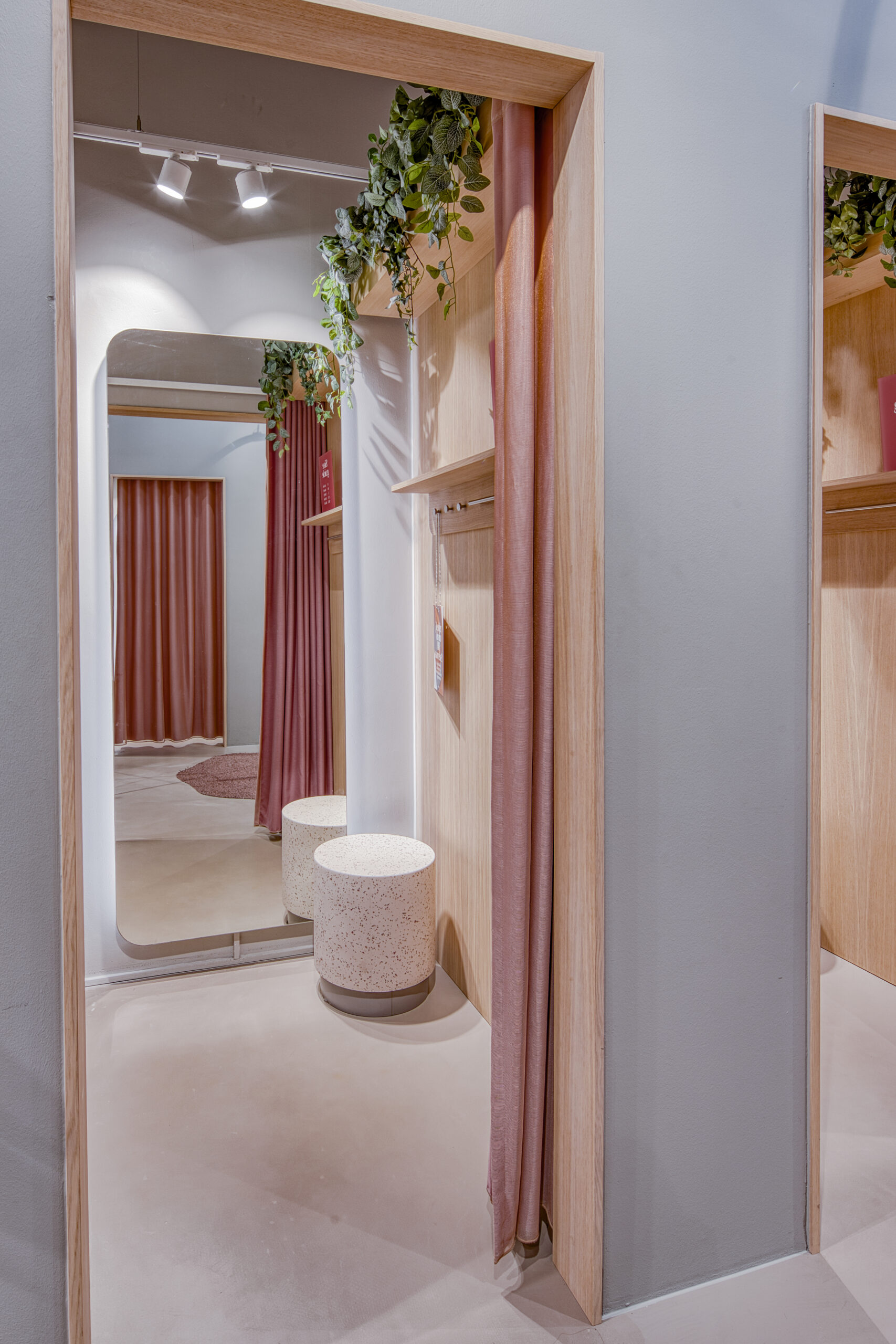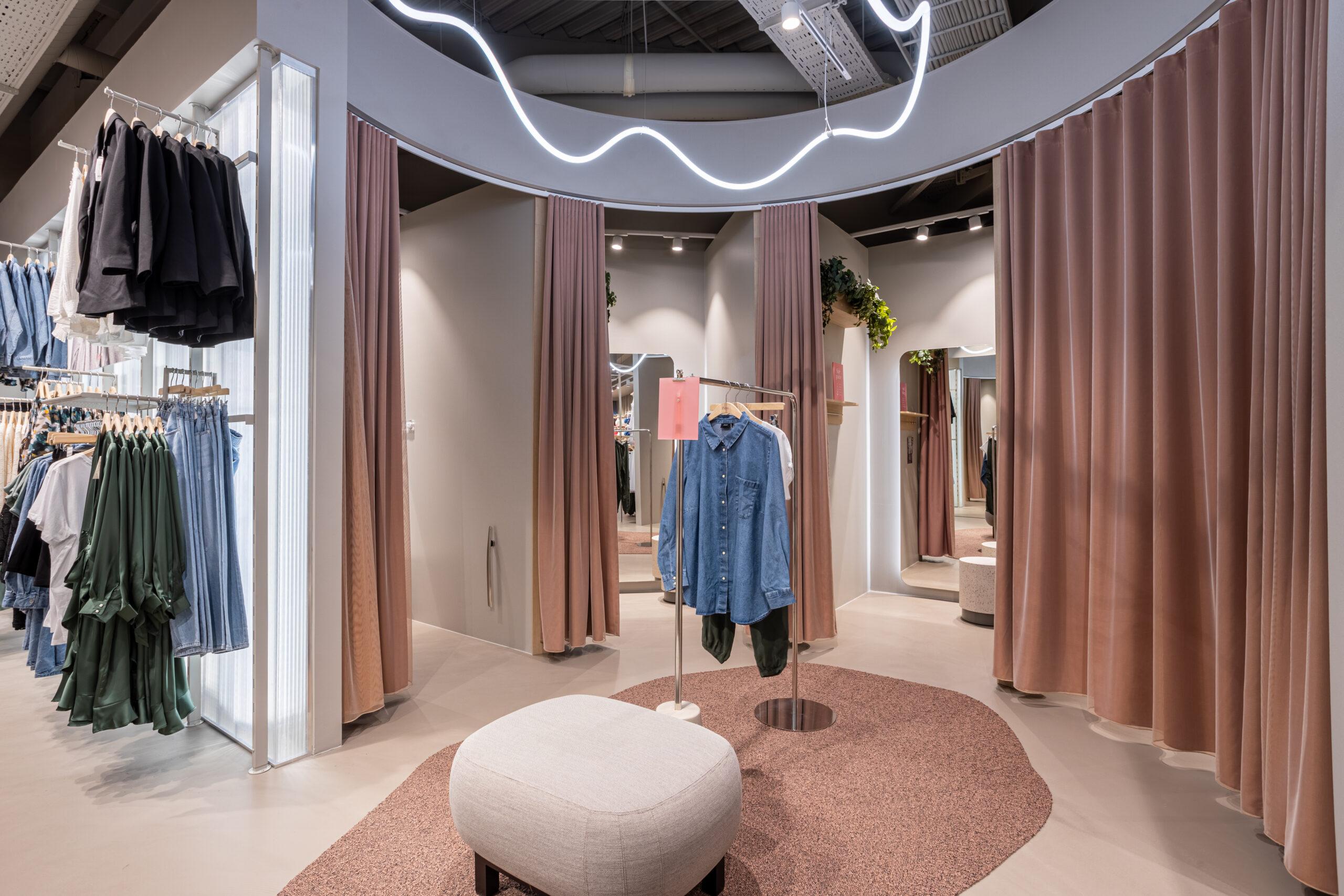 Prøverumsforhæng kan også laves med almindelig gardinophæng. Vi vejleder jer altid med udgangspunkt i brugsområdet og den specifikke opgave.
